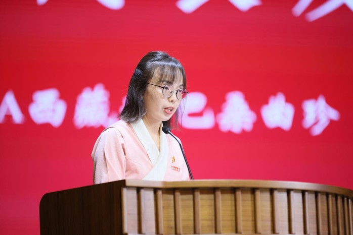巴桑曲珍作为西藏班硕士代表分享了自己在复旦的求学经历以及在作为一名少数民族基层党员干部的工作经历。她谈到,面对实现中华民族伟大复兴的历史使命,党和国家对青年干部提出了新要求,立身百行、以学为先,在浩瀚的知识海洋里,年轻干部们更应勤勉刻苦、精进学业,心无旁骛地度过接下来珍贵的求知时光。
