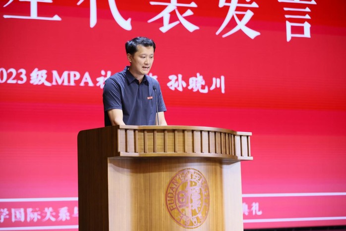 来自MPA社会班的孙晓川及西藏班的巴桑曲珍作为MPA同学代表发言。孙晓川结合自身的考研经历谈到,百折不挠的精神,坚如磐石的信念和孜孜不倦的追求是今年全体新生拥有的宝贵品质。他结合工作经验,勉励同学们能够拥抱新技术、立体长远地看待问题,并始终应保有坚强的意志,为成为有追求、有底线、有温度又有趣的人而奋斗。
