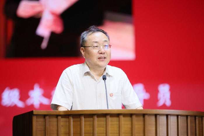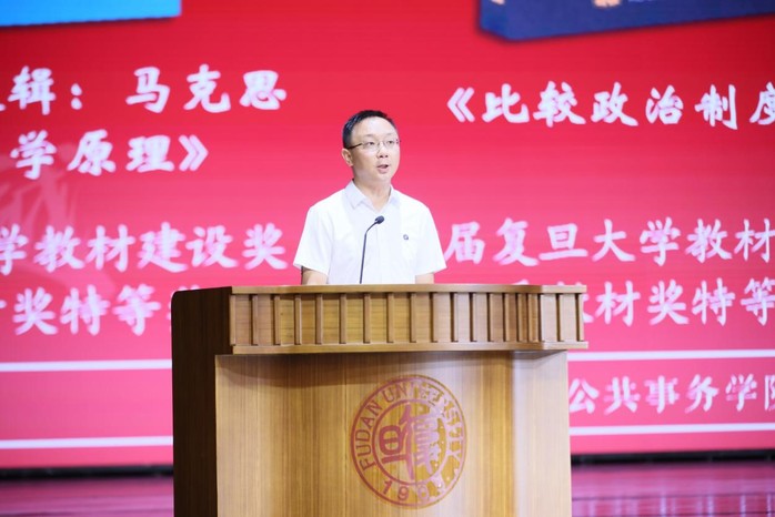 最后,国务学院院长苏长和教授代表全体教师欢迎和祝贺同学们成为国务学院大家庭的一员。2023年正值政治学学科建立一百年,苏院长带领同学们回顾了复旦政治学的百年发展历史,勉励同学们要赓续政心,有使命意识和担当意识,牢记“国箴务实、卓越为公”的院训,像新生代表发言所说的那样,把“卓越”作为一种习惯、使“为公”成为一种态度,成为合格、优秀、自豪的国务人。