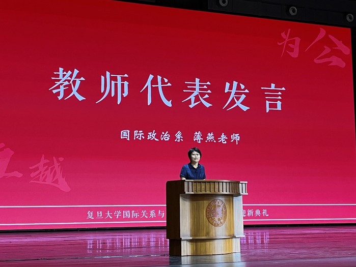 国际政治系薄燕老师作为教师代表向同学们寄语。薄老师分享了自己的求学历程,鼓励学生们要在专业学习过程中,善于发现自己的兴趣,并保持专注;注重培养合作的学习习惯,积极主动地参与构建学习共同体;运用韧性思维对抗不确定性,更要勇于实践、勤于反思,将现实问题与学理问题进行相互关照与转化,在知行合一中,成为以天下为己任、卓越为公的人。