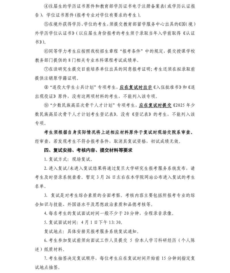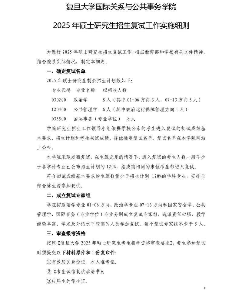 国务学院2025年硕士研究生招生复试工作实施细则