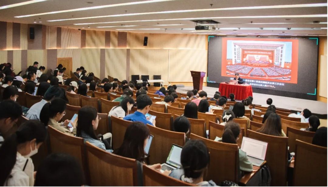 报告结束后,潘伟杰同志对丁光宏教授的精彩报告表达诚挚感谢,与会人员也就相关问题积极与丁教授进行交流。最后,潘伟杰同志总结指出,通过此次报告,学院党员师生更加深入了解全国两会精神,感受到了总书记对于教育、科技、人才强国的高度重视。学院将认真学习贯彻习近平总书记重要讲话和全国两会精神,准确把握当前新形势、新任务、新要求,切实落实学校第十六次党代会决策部署,扎实推进教育教学改革与本研融通整体试点改革,积极探索高质量党建引领教育事业高质量发展的新途径,为教育强国建设作出应有贡献。