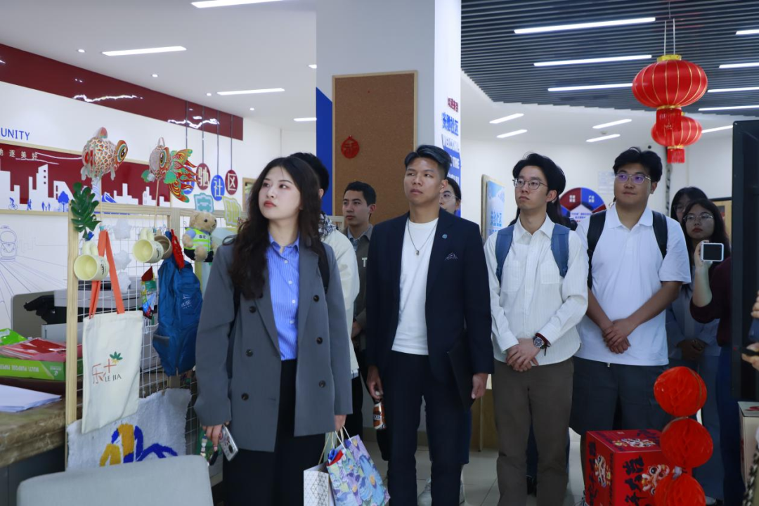 在安驰社区党群服务站,安驰社区党支部书记、居委会主任王晓桦为同学们深入讲解了该社区在党建引领、便民服务与民主参与机制上的多维探索。社区服务以“心平契合”为核心要旨,要求社区工作人员秉持责任心搭建专业平台,提升社区服务的温度。社区工作人员为同学们详细介绍了安驰社区汽车城国际化街区复式理事会的六大联盟——党建联盟、产业联盟、部门联盟、商业联盟、社校联盟和居委会,并以社区网红面包店的建设和道路两侧增设交通围栏为例,指出社区生活中许多看似微末的小事都要经过密切的协调配合,再以“润物细无声”的方式提升社区居民的生活幸福感。