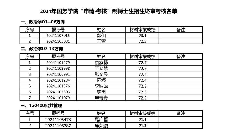 2024年国务学院“申请-考核”制博士生招生终审考核递补名单
