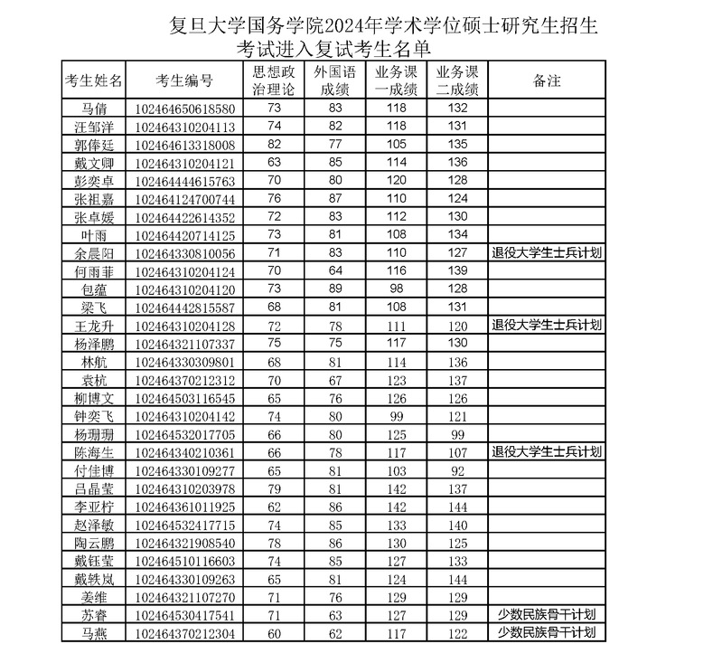 电影网站 国务学院2024年学术学位硕士研究生招生考试进入复试考生名单