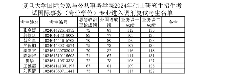 电影网站 国务学院2024年硕士研究生招生考试国际事务(专业学位)专业进入调剂复试考生名单