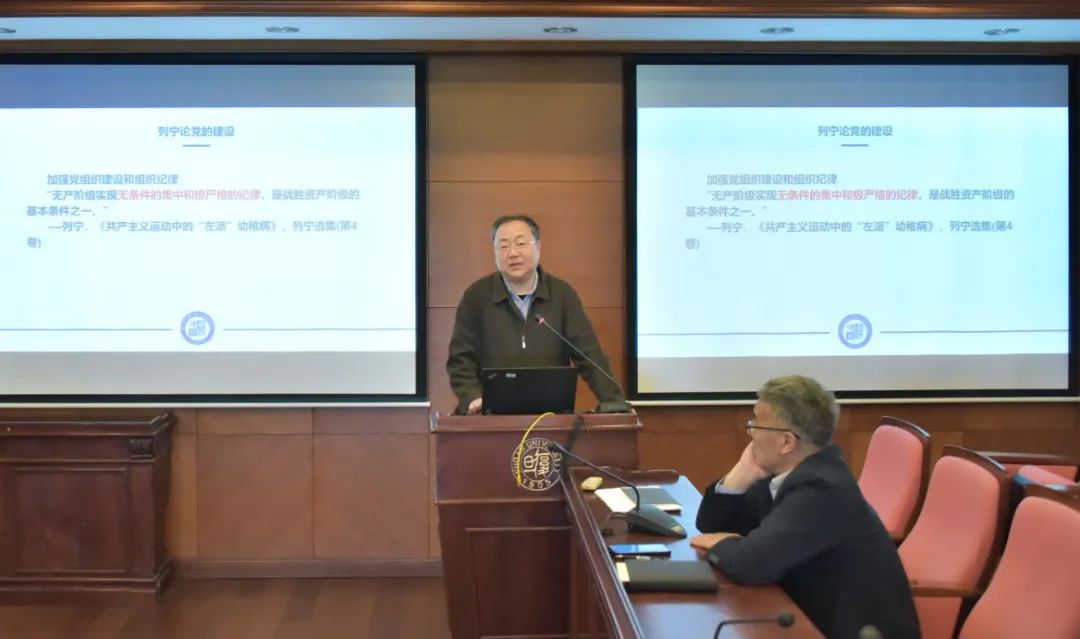 其后,刘季平书记主讲纪律党课,主题为“政治纪律是最重要、最根本、最关键的纪律”。首先,他分析了列宁、毛泽东、习近平关于党的纪律的重要论述,强调党的政治建设是党的根本性建设,要把“两个维护”作为首要政治纪律,严格执行《中国共产党纪律处分条例》。他表示,民心是最大的政治,党除了工人阶级和最广大人民群众的利益,没有自己特殊的利益,要加强党内政治文化建设,增强各级领导干部的政治敏锐性和政治鉴别力,永葆政治本色。