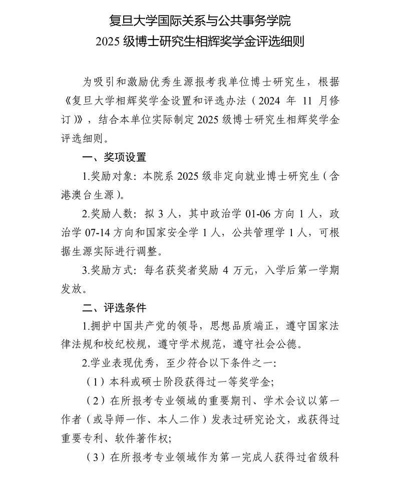 电影网站 2025级博士研究生相辉奖学金评选细则