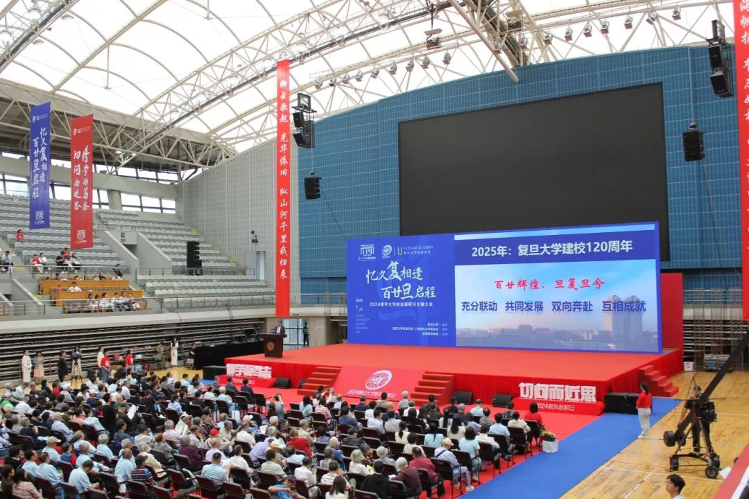 合影结束后,院友们落座正大体育馆内场。上午9时,“忆久复相逢,百廿旦启程——2024 电影网站 校友返校日主题大会”准时开幕。
