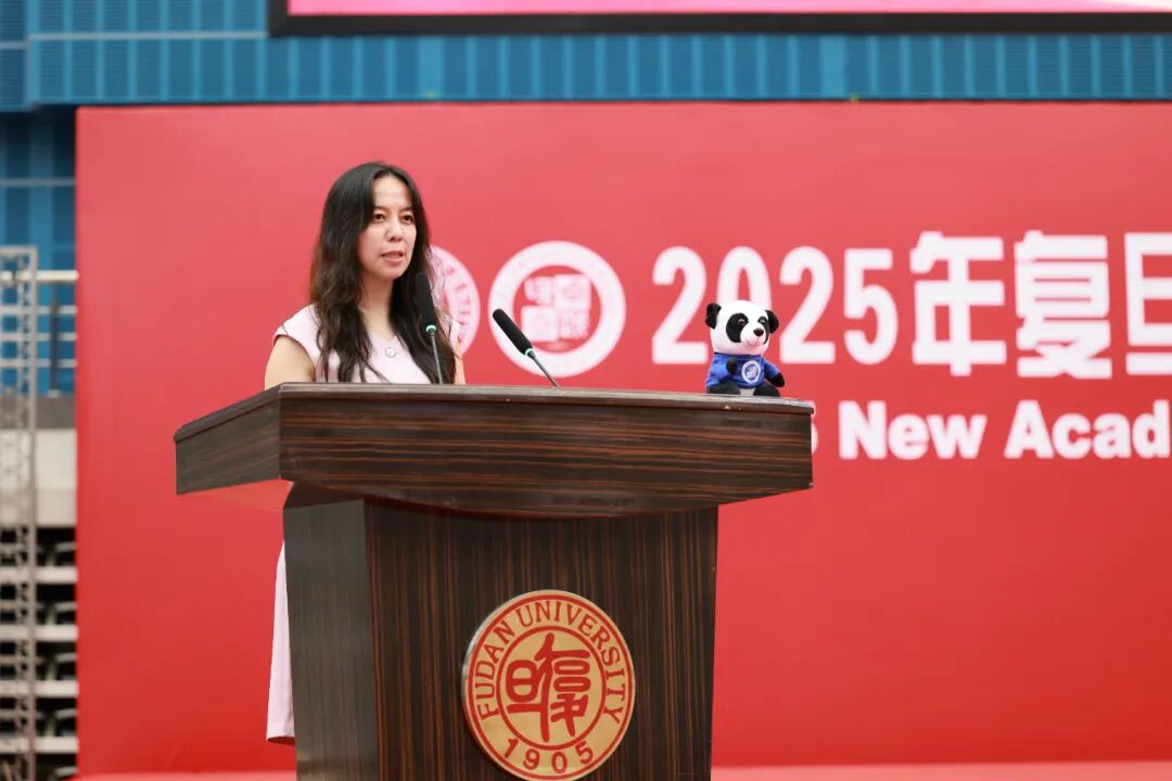 公共行政系副教授郑冰岛老师作为教师代表亲切地分享了自己的求学与教学体会。她表示,大学是一个展现和学习多样性的地方,鼓励新生保持开阔的视野和积极的心态,勇于尝试、不怕失败。她提到,面对充满不确定性的时代,国务学院的院训“国箴务实,卓越为公”将为同学们提供人生的锚点,帮助大家在多样性和不确定性中找到方向,在复旦这片沃土上书写属于自己的精彩篇章。