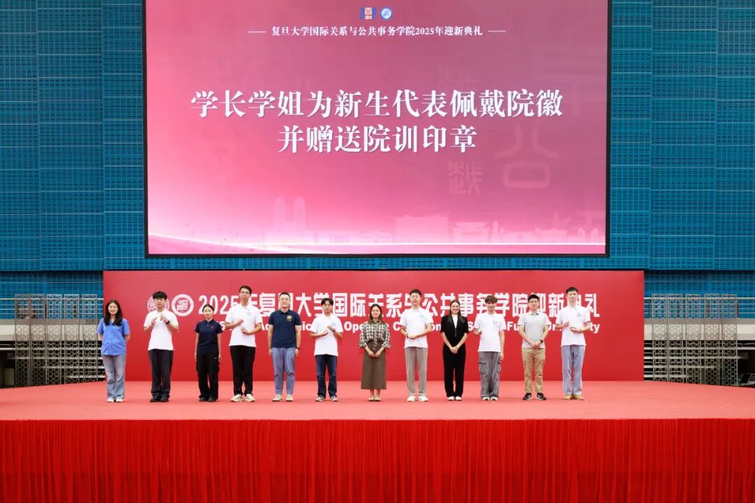 随后,学长学姐为新生代表佩戴院徽并赠送院训纪念印章。这枚院徽、这方印章,不仅是身份的象征,更是精神的传递、责任的托付,激励着新一代国务人不忘初心、砥砺前行。