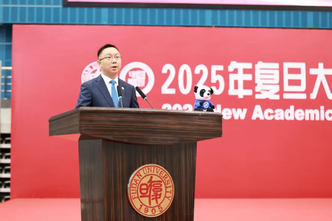最后,他勉励新生“精神贯、交相勉、向前进、同灿烂”,期待大家在复旦园中读好书、成栋梁!