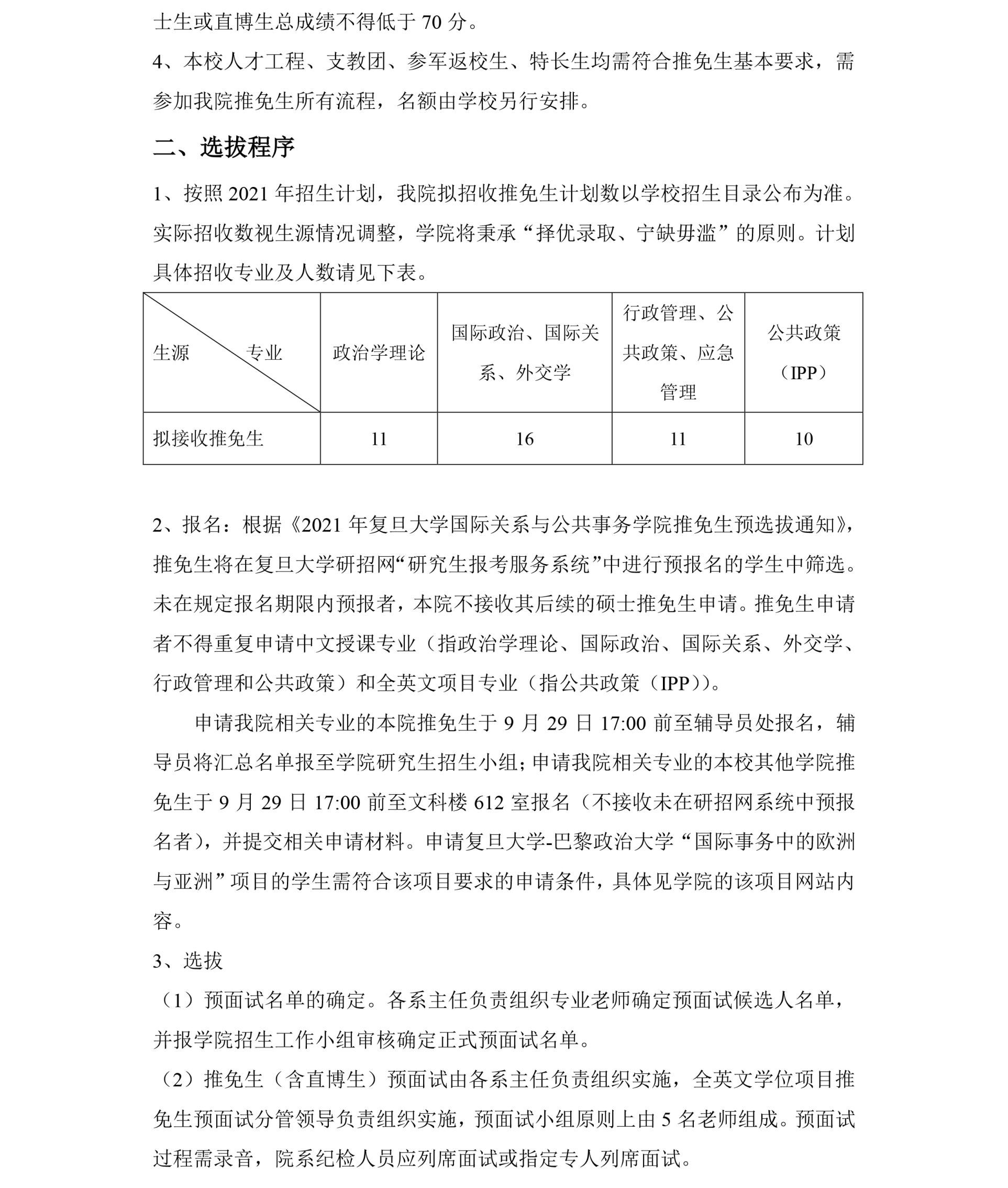 《国务学院招收2021年推荐免试研究生工作细则》