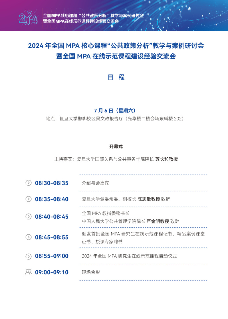 全国MPA核心课程“公共政策分析”教学与案例研讨会暨全国MPA在线示范课程建设经验交流会会议日程
