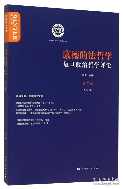 洪涛 编《康德与法哲学》(《复旦政治哲学评论》第7辑),2015年9月