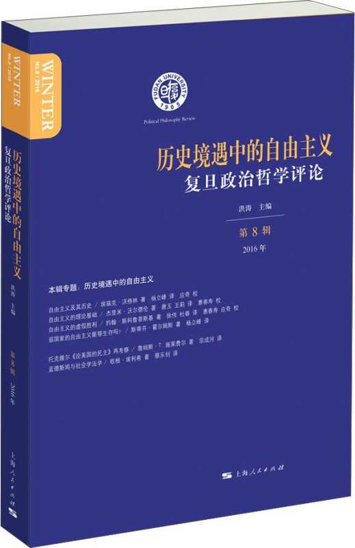 洪涛 编《历史境遇中的自由主义》(《复旦政治哲学评论》第8辑),2016年12月