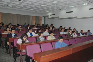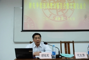 首先社科部顾钰民教授作了题为《中国共产党成立90周年与马克思主义中国化》的党史报告。顾老师指出我们应当科学地、可观地、正确地认识和评价党成立至今90年的历史,这是进一步加强党的建设的基本前提。他认为中国共产党成立至今作出了三次历史性的重大选择,第一次是必须建立社会主义制度的制度选择(1921-1949),目的是解决民族独立和人民解放;第二次是建立中国特色社会主义道路的道路选择(1949-1978),为的是解决国家富强和人民富裕;第三次是科学发展模式的发展观的选择(1978年至今),从经济大国转变为经济强国,综合竞争力不断提高。这三次历史性的选择使中国社会发生了巨大的变化,是中国共产党为中华民族作出的最大的贡献。与此相对应地形成了中国化马克思主义的三大理论成果,分别是毛泽东思想、邓小平理论和“三个代表”重要思想、科学发展观。中国共产党90年的历程是马克思主义基本原理同中国实际相结合的过程,理论随着实践不断丰富和发展。顾老师最后强调只有科学客观地认识党的90年的历史,才能面对新时期、新任务和新要求,更好地加强党的建设,从而真正实现民族的复兴。