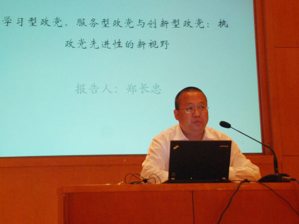 2013年5月28日下午,由国务学院党委组织的“国箴务实论坛——十八大理论系列讲座”第五讲在谢希德报告厅举行,郑长忠副教授做了题为“学习型政党、服务型政党、创新型政党:执政党先进性建设的新视野”的主题发言, 学院全体学生党员和积极分子出席本场讲座。
