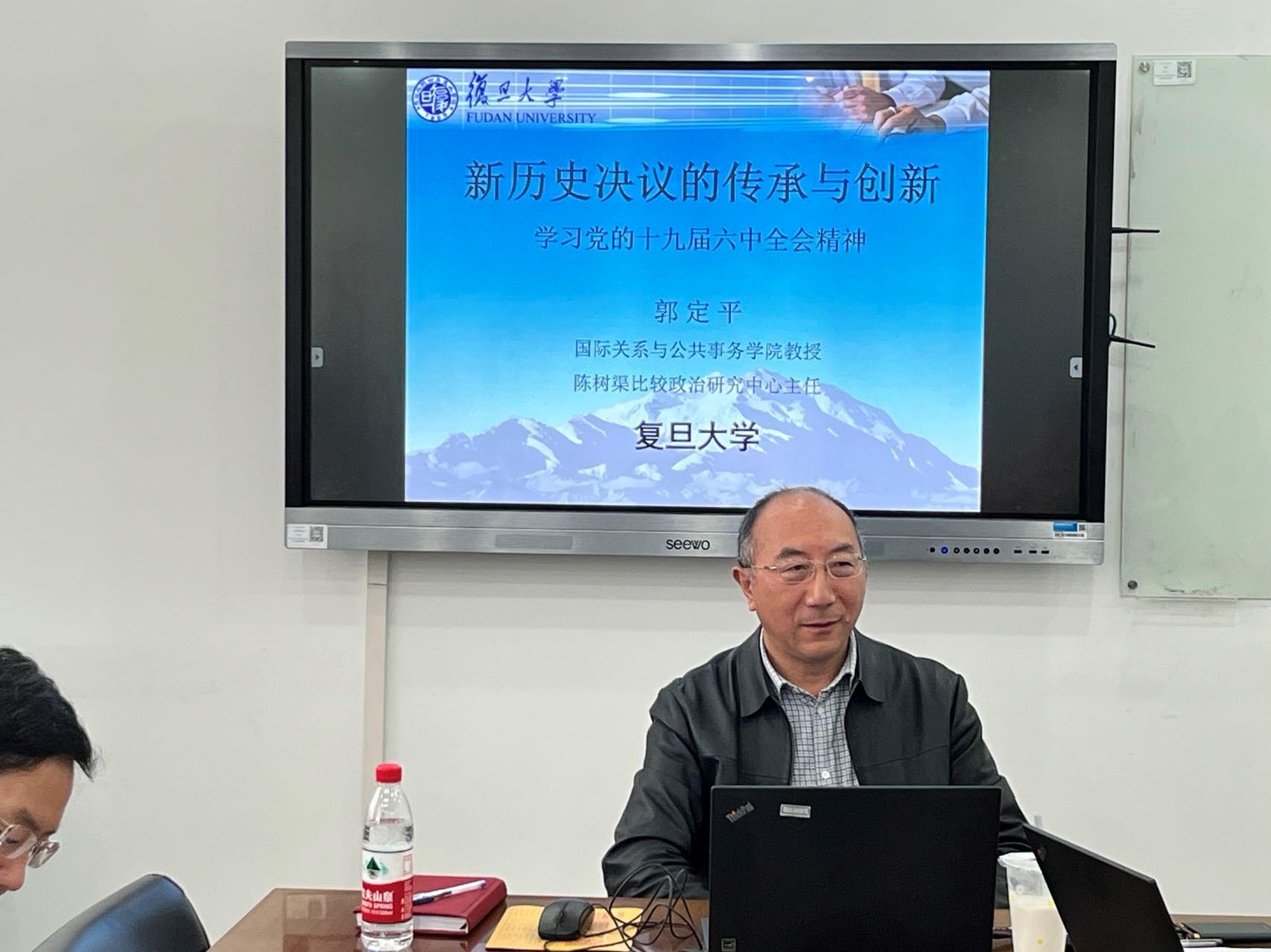 2021年11月29日, 电影网站 党委成功举办国箴务实第57讲。本次讲座是国务学院党建品牌“国箴务实”论坛学习十九届六中全会精神系列讲座的第一讲,由郭定平教授主讲,主题是:新历史决议的传承与创新。刘季平书记主持本次讲座,学院党委中心组成员和师生党支部骨干参与。