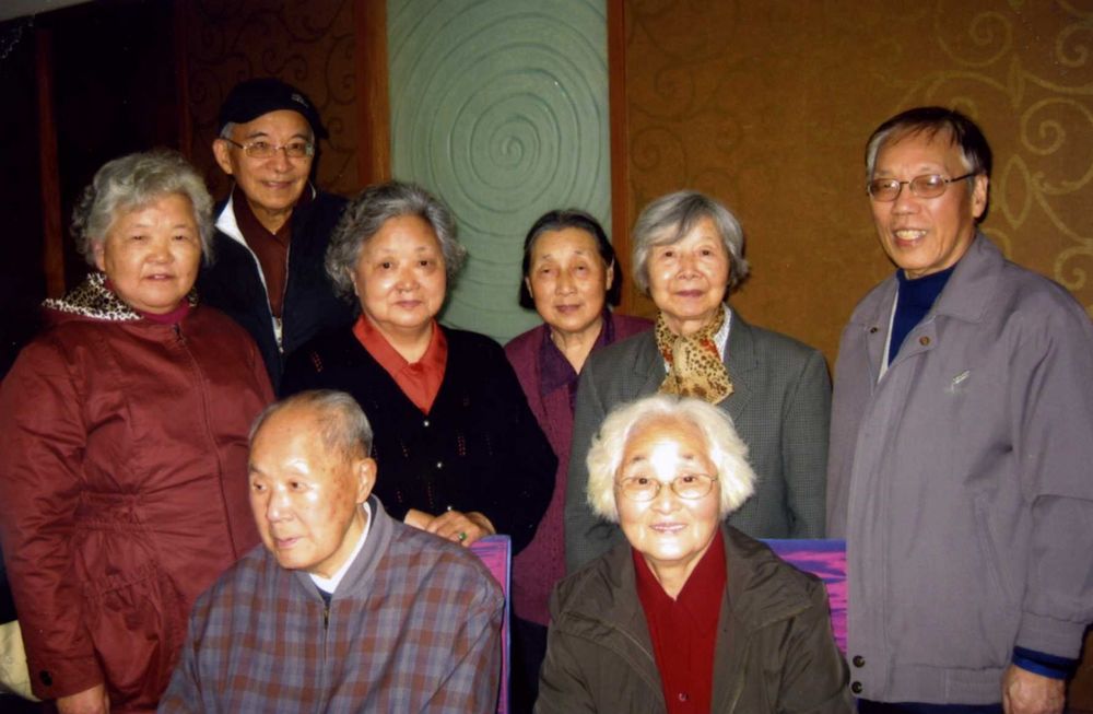 (6)国政系老领导、老教师合影: 第一排:(左)余开祥(教授,国政系原副主任、世经所所长)、(右)陈俊翕(教授,原国政系教师,余开祥教授夫人) 第二排:(从左至右)祝启秀(国务学院副教授)、王国明(教授,国政系原主任)、郑维淑(国政系原总支副书记)、李冰(副教授,原国政系教师)、盛善珠、刘宏谊