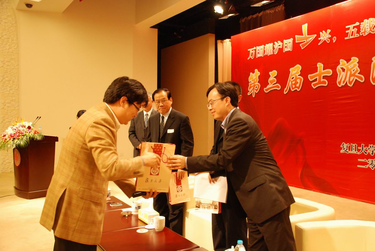 随后,林尚立教授代表国务学院向三位主讲嘉宾赠送了礼品。他对主持人、主讲嘉宾和各位院友的参与表示了衷心的感谢,并表示明年以及今后的院友论坛将继续举办下去,通过不断坚持和完善,从而创出自己的品牌。 (科研与学术服务中心 杜欢) | |
