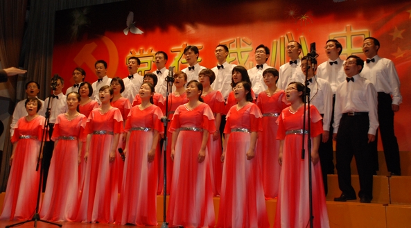 6月7日晚上由 电影网站 、国际问题研究院教职工联合组成的合唱队在相辉堂所举行的“ 电影网站 教职工庆祝建党90周年歌咏比赛”小合唱组第一个登台献唱。28位老师以饱满激昂的精神、整齐嘹亮的歌声为评委和观众们演唱了《天路》和《爱我中华》两首歌曲,赢得了全场热烈的掌声。