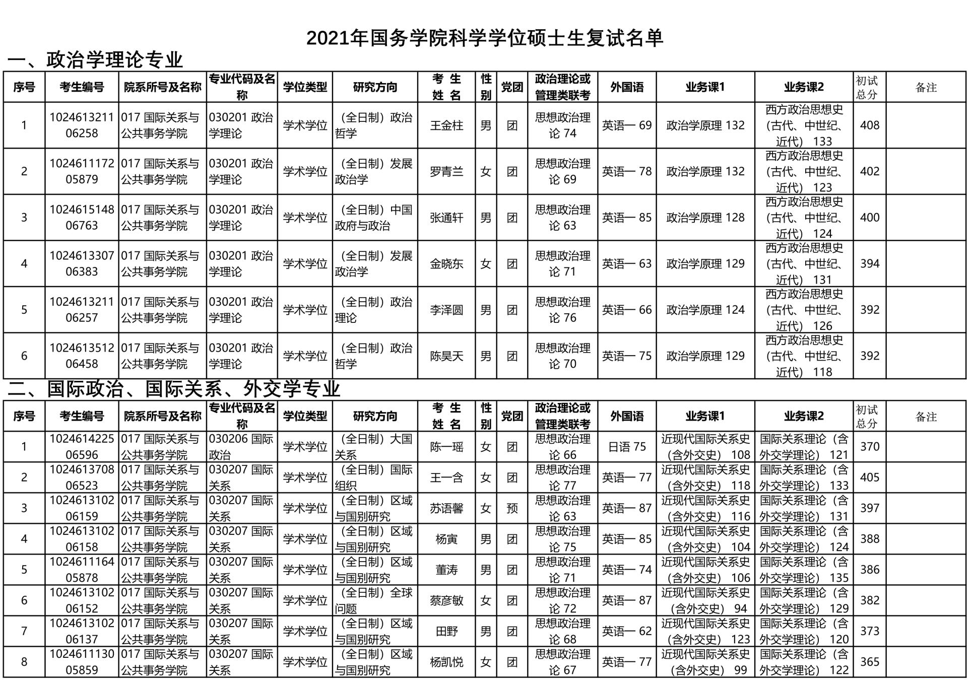 2021年 电影网站 国务学院科学学位硕士生复试名单