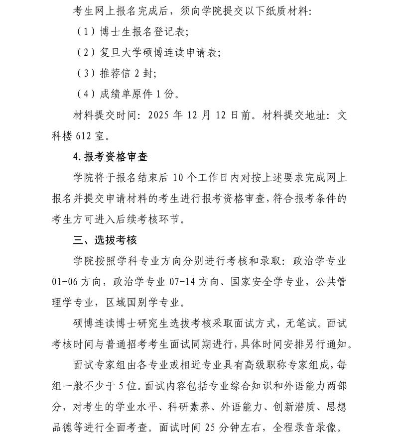 复旦国务学院2026年硕博连读博士研究生招生办法