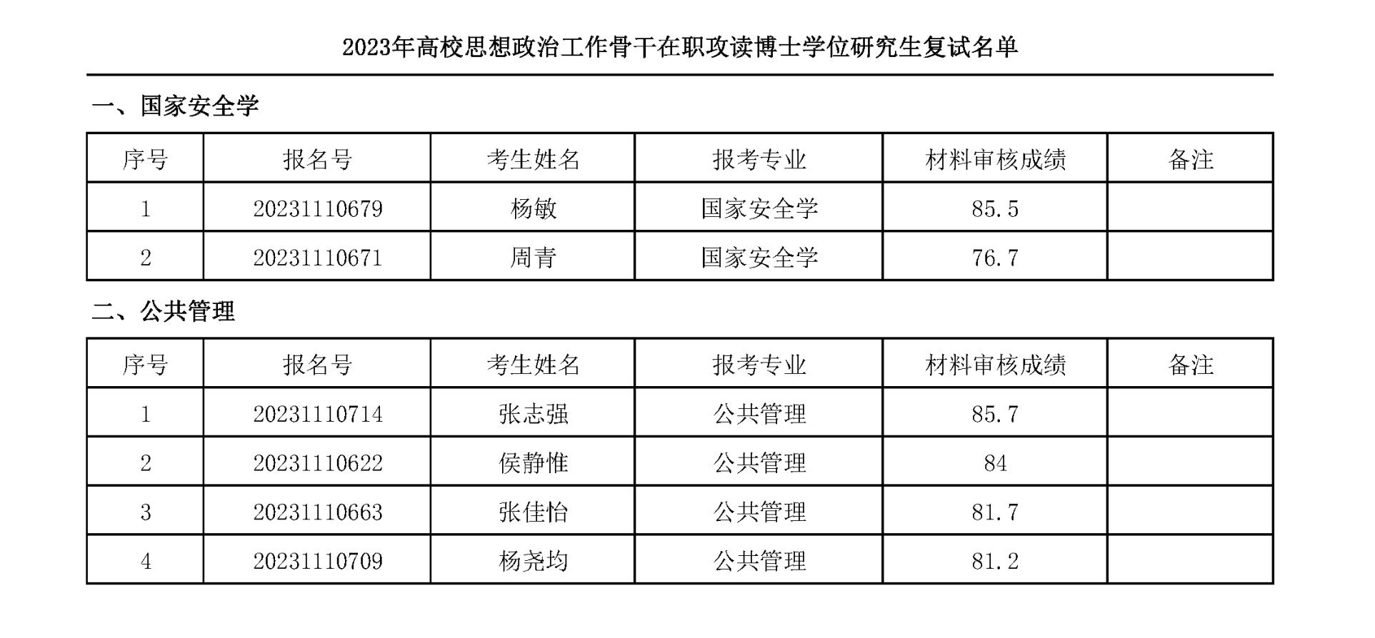 2023年高校思想政治工作骨干在职攻读博士学位研究生复试名单