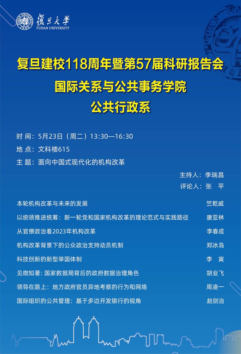 复旦建校118周年暨第57届科研报告会 | 面向中国式现代化的机构改革(5.23)