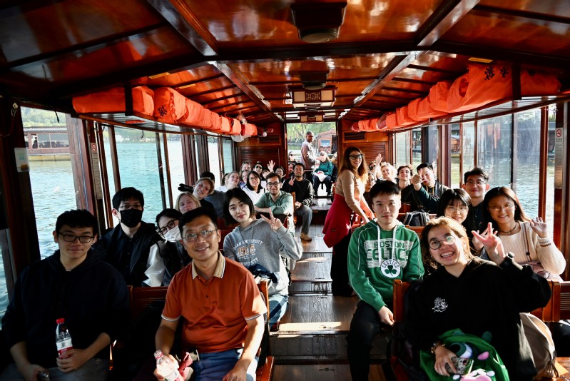下午,电影网站 师生在杭州西湖乘坐游船感受秀丽清雅的湖光山色、璀璨丰蕴的文物古迹和文化艺术。西湖不但独擅山水秀丽之美、林壑幽深之胜,而且还有丰富的文物古迹、优美动人的神话传说,自然、人文、历史、艺术,巧妙地融合在一起,是我国著名的历史文化游览胜地。同学们认真聆听关于三潭映月、苏堤、断桥等西湖景点的历史资料,纷纷拍照记录下这难忘的湖光山色。