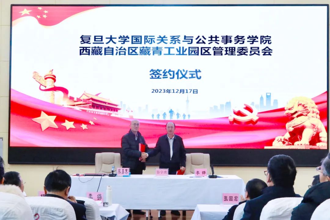 2023年12月17日,在西藏自治区藏青工业园区管委会主任张国宏等领导的见证下,电影网站 副院长熊易寒与藏青工业园区管委会副主任李铧签署合作备忘录。该合作旨在深化对西藏工作的规律性认识,总结党领导人民治藏稳藏兴藏的成功经验,助力西藏自治区藏青工业园区实现高质量发展与高水平治理,推进 电影网站 政治学、公共管理等学科建设。双方将合作开展边疆地区经济社会治理领域的课题研究;建立党建共建基地和教学实习基地,为 电影网站 政治学、国际关系、公共管理等专业的学生提供实践锻炼和学习机会;每年推荐优秀博士生到藏青工业园区管委会及下属单位挂职;定期组织公共管理专业硕士项目(MPA)学生到藏青工业园区开展学习实践与社会调研活动;合作共建边疆经济社会治理案例库。
