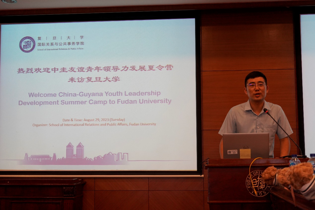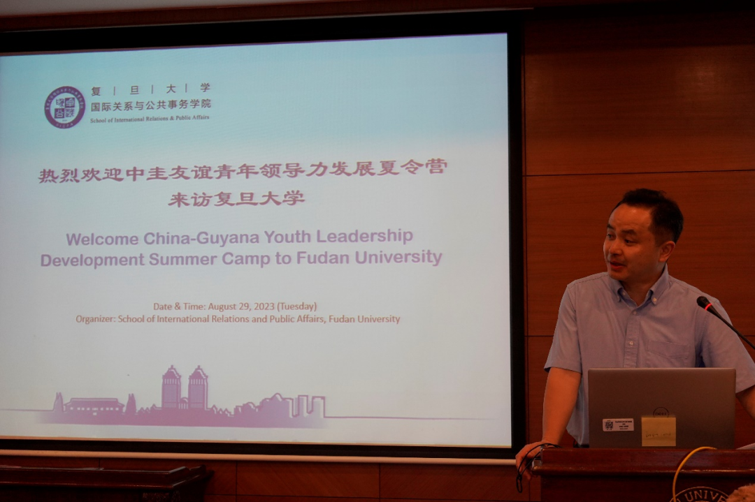 国务学院国际政治系系主任郑宇作为此次交流座谈会的主讲人,以“中拉合作”为题向圭方来华团组介绍了中国与拉美和加勒比国家在贸易、金融、教育等领域的合作情况。他还表示,近年来中拉经贸合作蓬勃开展,共建“一带一路”走深走实,为推动全球发展凝聚合力,生动演绎了“志合者,不以山海为远”的中拉友谊。