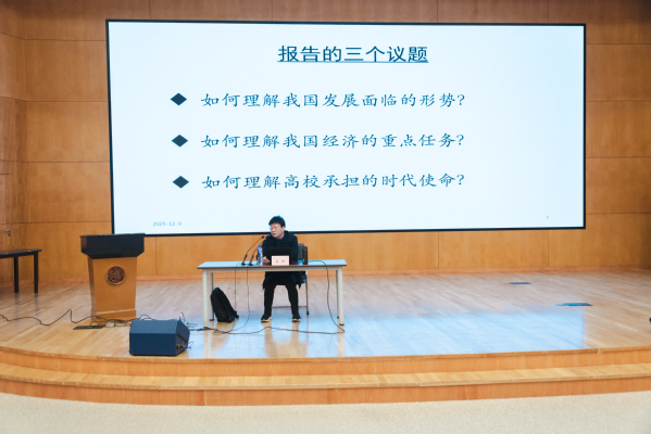本次讲座聚焦全会审议通过的《中共中央关于制定国民经济和社会发展第十五个五年规划的建议》,结合当前国内外发展形势,深入阐释了“十五五”时期我国发展面临的客观形势、我国经济的重点任务以及高校承担的时代使命。