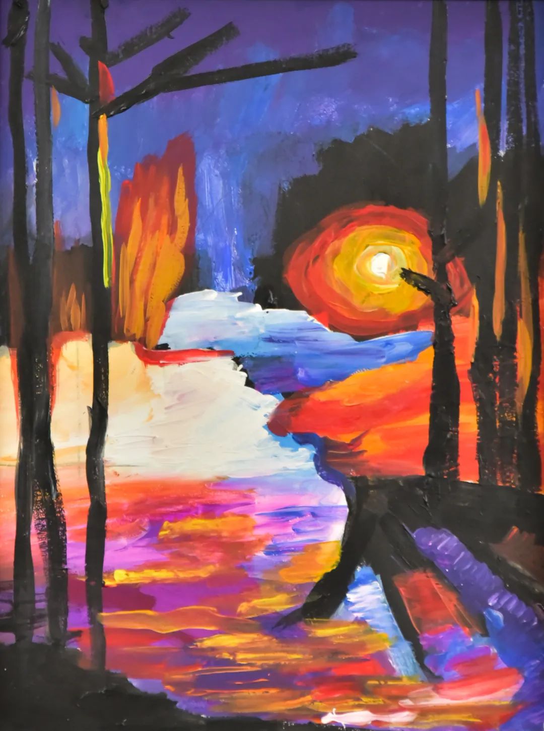 教职工子女的创作,恰如少年国务人的梦想,朝气蓬勃,意气风发,纯净而富有想象,鲜艳的色彩让人感受到他们欣欣向荣的风貌。水隔笙簧,白日鸟啼花竹里;庭园锦绣,青春人在画图中。小作者们凭借敏锐的感受力,用稚嫩的笔触描绘出一幅幅对未来的美好愿景,共同祝福学院光辉灿烂的明天。